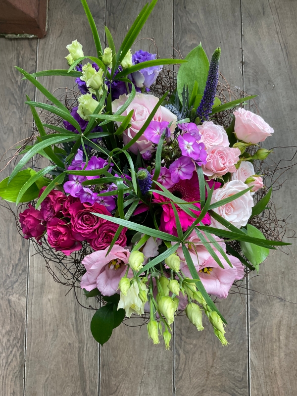 Seasonal pink and purples posy.